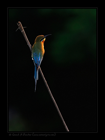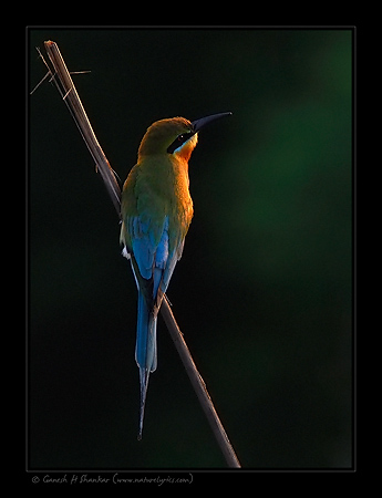 In this image of the Blue Tailed Bee Eater, I had several choices for quality of overall light from pure